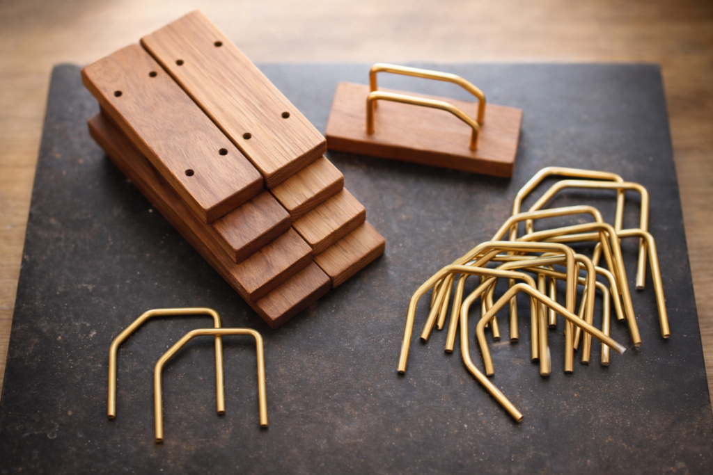 やさしく輝く真鍮を組み合わせたシンプルな木製雑貨を制作しています。